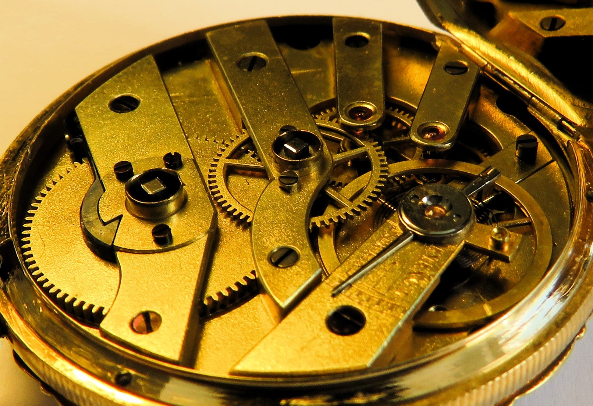 Gehäusedurchmesser: 35 mm, Zylinderhemmung, Gehäuse und Krone gestempelt K18, Schlüsselaufzug